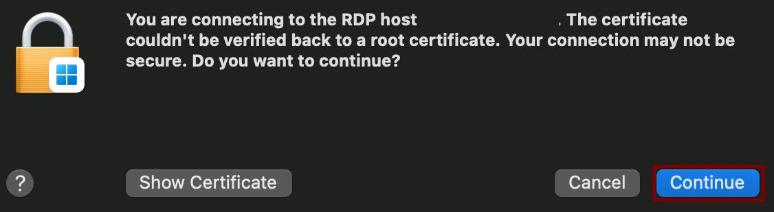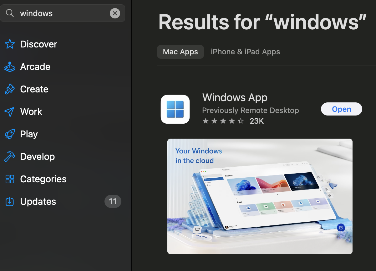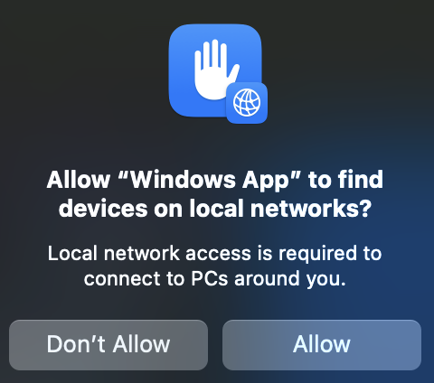 You may see a warning to allow “Windows App” to find devices on local networks, this is NOT required so click “Don’t Allow“