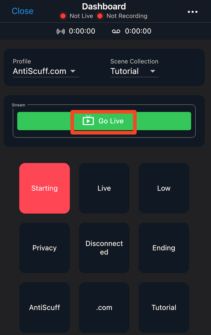 To start the stream without using the Chatbot – press Go Live within OBS Blade
