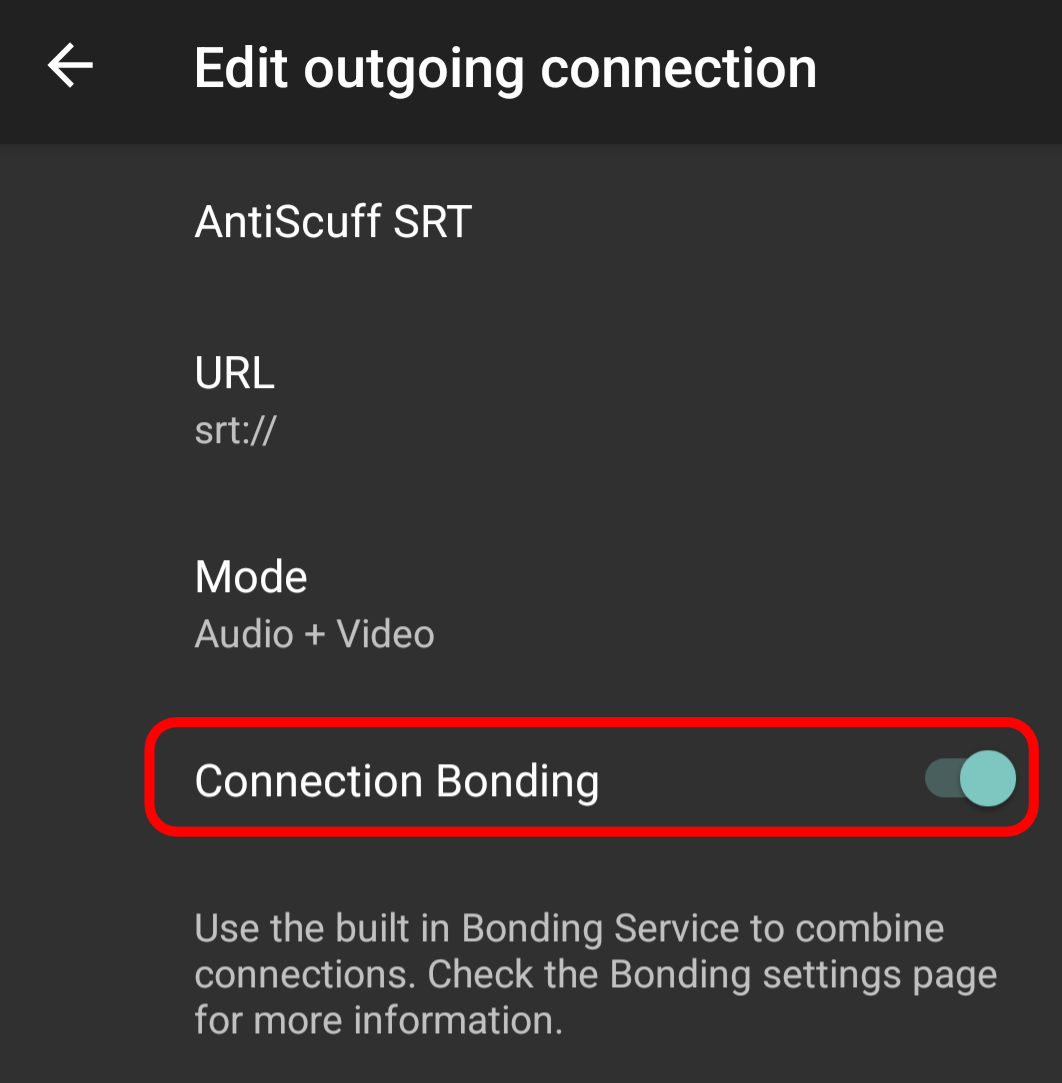 Disable Connection Bonding by pressing the word until the slider turns off and shows as below